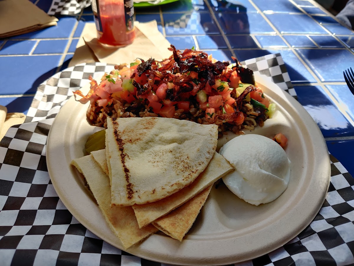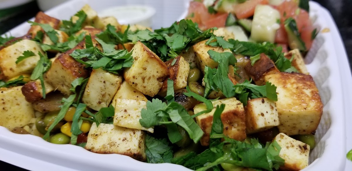 One standout on the menu is the Hot Sauce, Arugula & Beets Salad Toasted Pecans Feta Cranberries with Balsamic House Dressing. This salad is vibrant, packed with textures, and offers a perfect blend of sweet, tangy, and nutty flavors. For those looking for a more hearty option, the Paneer Shawarma Rice Plate is a must-try, serving up tender, marinated paneer over fluffy rice with spices that leave a lasting impression. If you’re in the mood for something lighter, the Half Panini with Side Salad or Cup of Soup provides a satisfying combination, perfect for a quick lunch or mid-afternoon snack.
